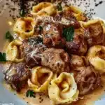 A delightful mix of cheese tortellini and juicy steak in a rich and creamy sauce, perfect for impressing family or friends.