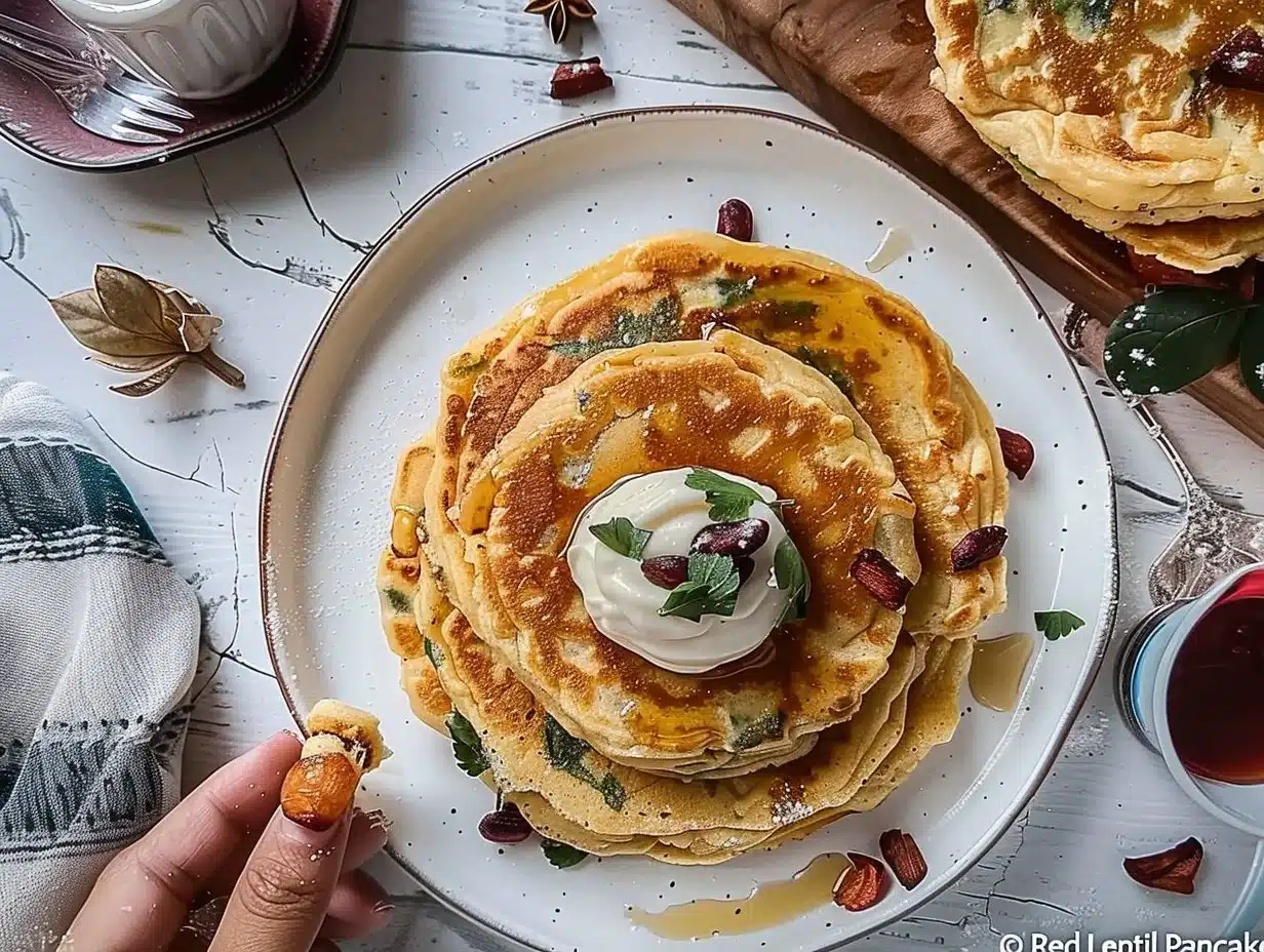 Delightful and nutritious red lentil pancakes that are crispy on the outside and soft on the inside, perfect for any meal or snack.